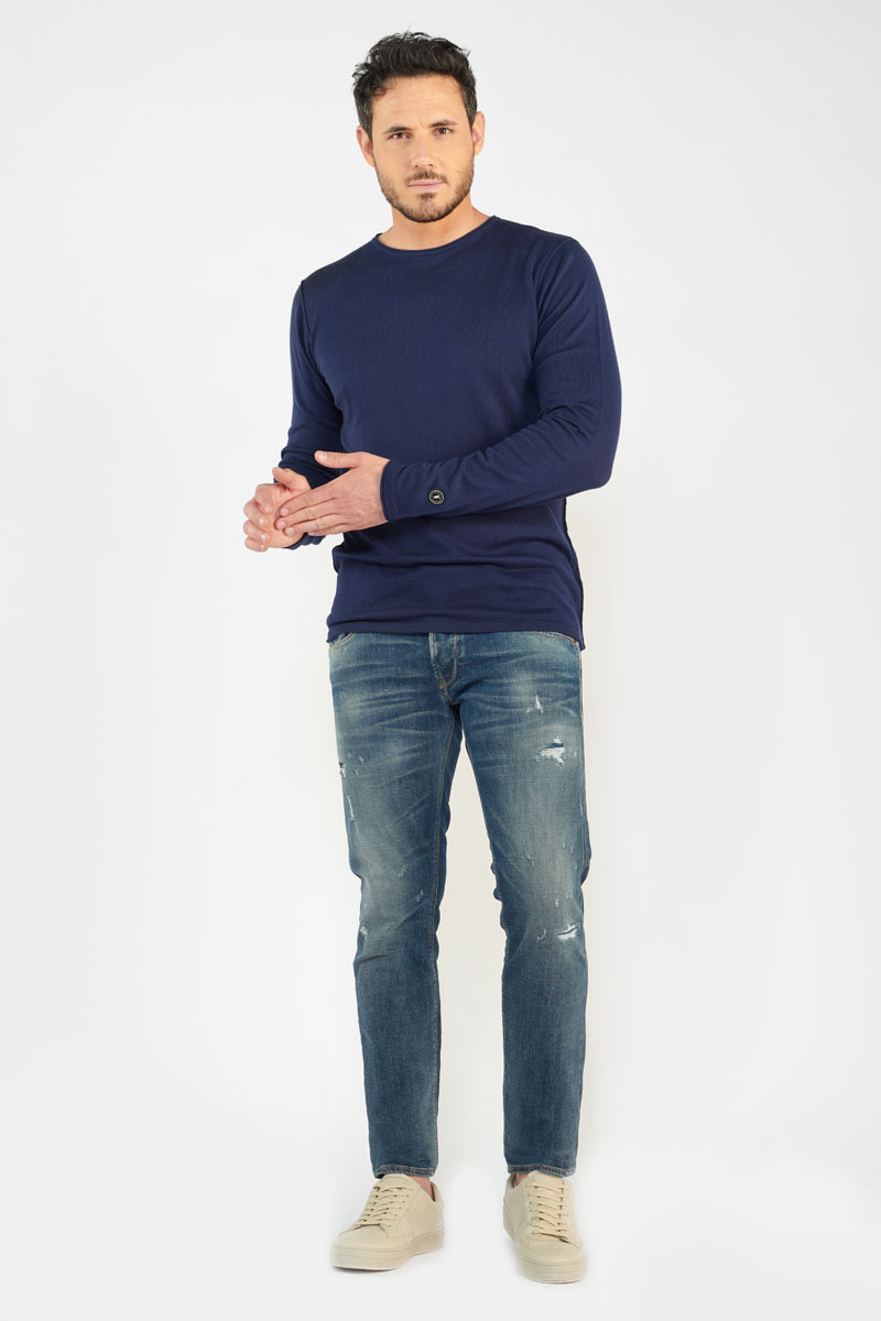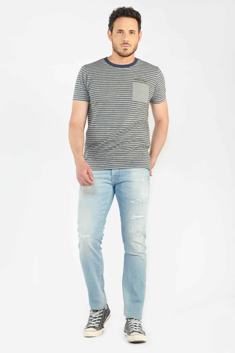 Adjusted jeans have a straight cut that is looser on the thigh and tighter on the lower leg. They are the equivalent of semi-slim jeans: a cut that is neither too tight nor too baggy! They perfectly suit all men, whatever their style may be. They are also, of course, highly comfortable and they provide excellent freedom of movement thanks to their stretchy fabric.