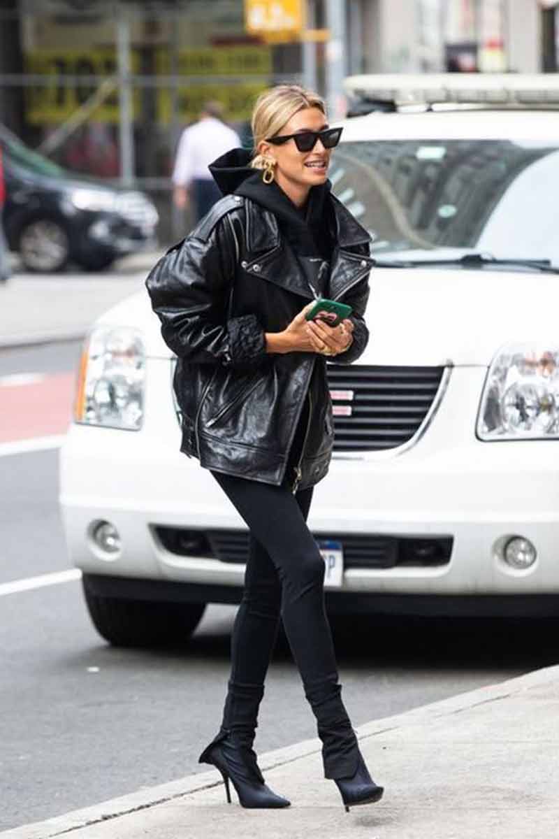 In winter, the best choice is a real leather perfecto to help you keep warm. You can choose one with a fur or padded collar. Perfectos are short jackets. You can wear one under a long coat when it is very cold; this is stylish and it will keep you warm!