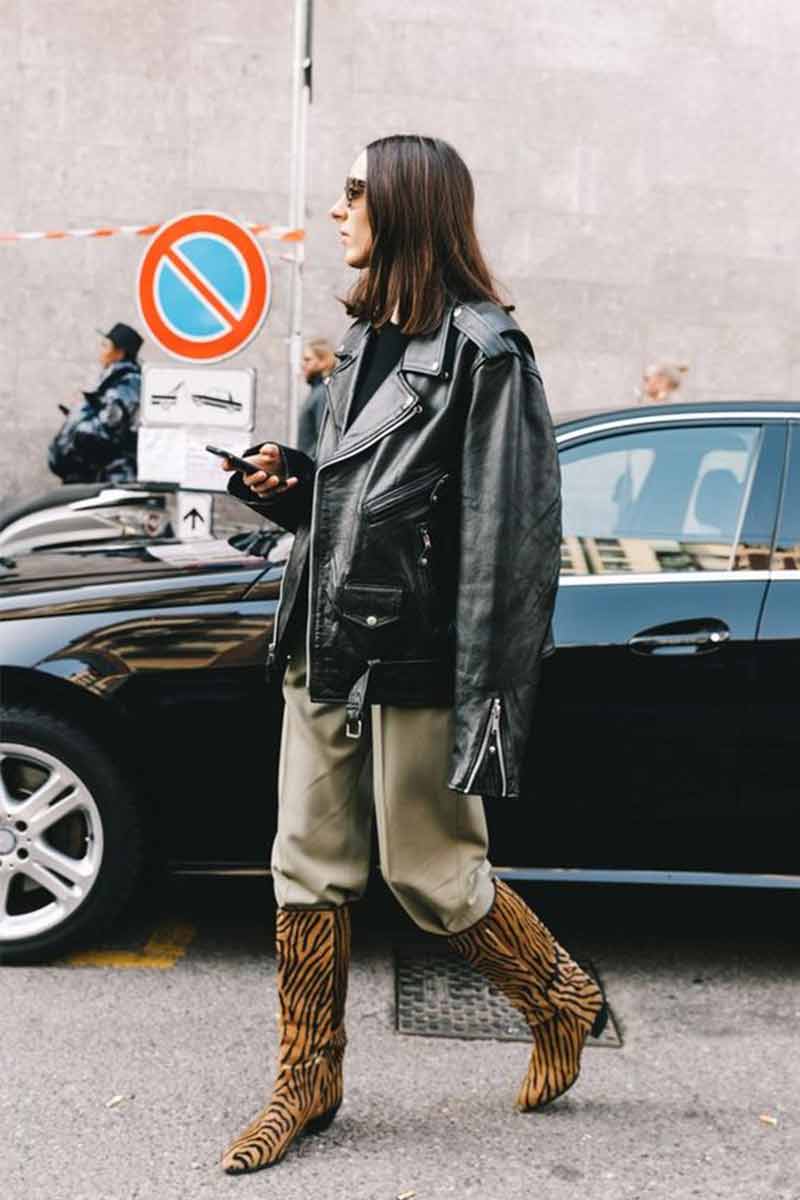 If you want to look ultra-feminine and casual chic, try wearing a miniskirt, which is very fashionable this year. Slip on your favourite pair of trendy sneakers and round the outfit off with a perfecto and a loose t-shirt.