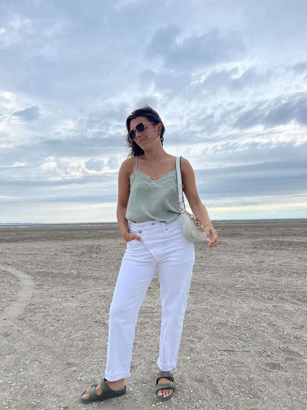 To be chic and resolutely glamorous, go for white criss cross jeans paired with a pretty, light top in pastel tones and heels or wedges. Don't forget the accessories: some gold jewellery, a small shoulder bag and sunglasses. This is a simple, chic and feminine outfit for spring!