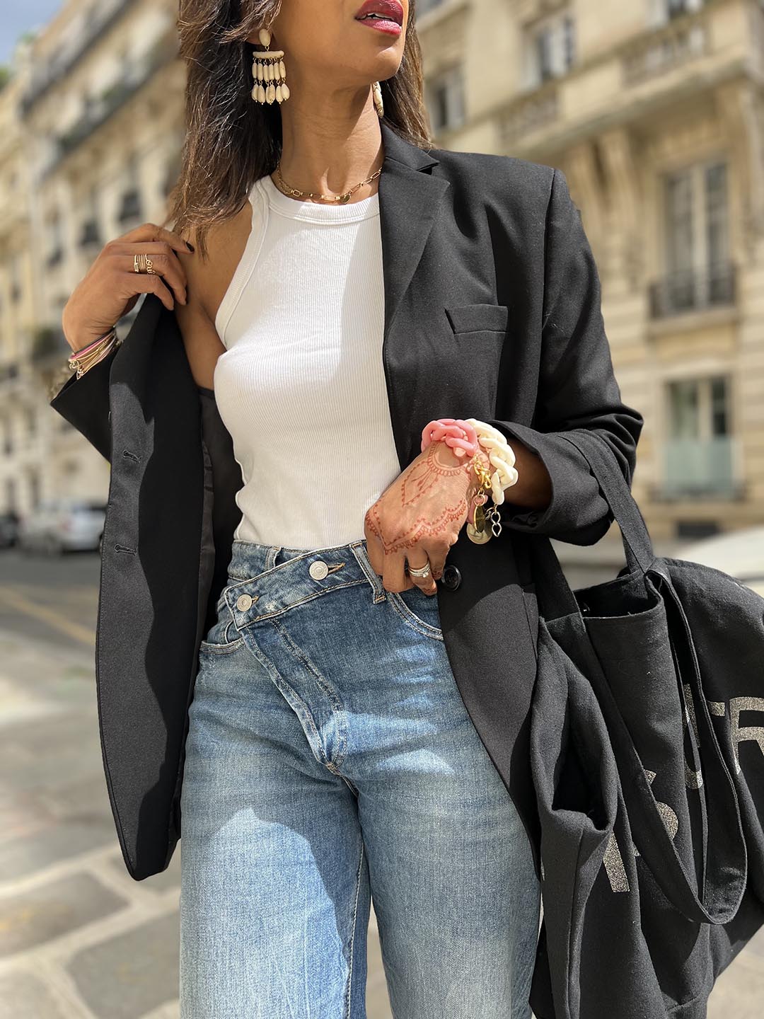 Tip: It is possible to create your own asymmetrical button jeans with a pair of your own jeans! There are many videos on the Internet about this. It's very simple: just take a pair of loose-fitting jeans, put the button on the first flap (the one closest to your waist) and fasten it. You're stylish in 2 minutes!