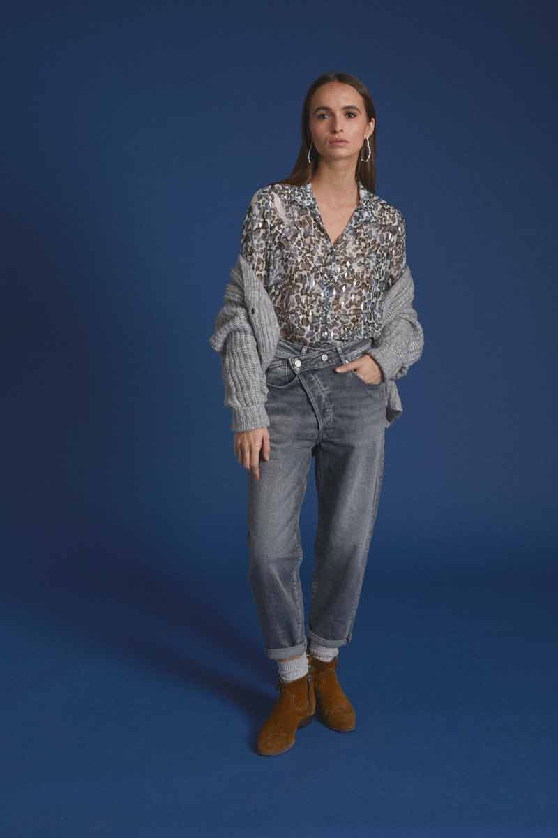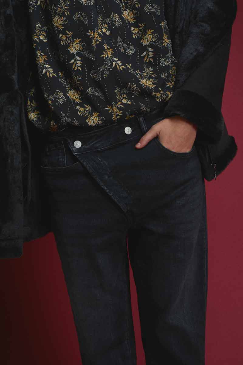 Jeans with asymmetrical buttons, also known as crisscross cut or crossed jeans, are incredibly successful. These denim trousers, with their highly original fastening, are the standout item in any outfit, with no need to add (too much) more!