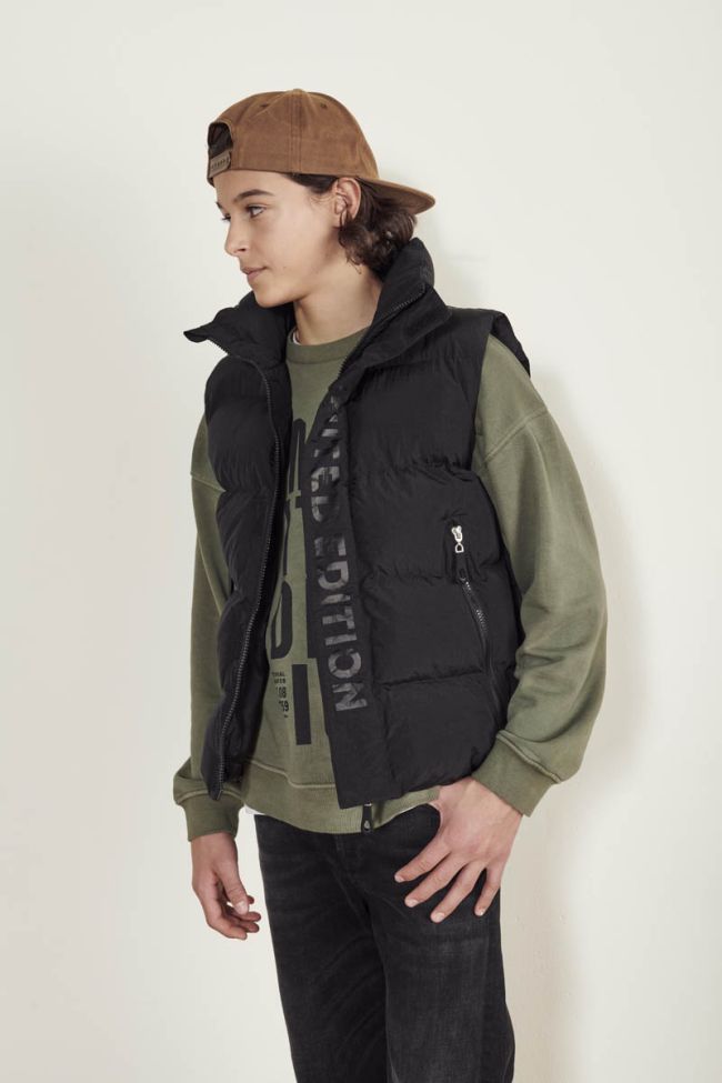 The Nazerbo sleeveless down jacket is ideal for keeping warm while staying on trend, with its quilted fabric and toned-in lettering on the button placket adding a touch of style. For added comfort, two front zipped pockets and a zipped fastening complete the down jacket.