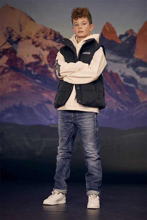 For the girl, we mix our jumpers and sweatshirts for girls, trousers, dresses for girls, coats, down jackets and jackets girls with our most beautiful jeans for girls and reveal your personality. For boys, it's easy to get trendy outfits with our boys' sweatshirts, jeans shorts, boy printed t-shirts, jeans for boys and original jackets boy.
