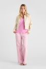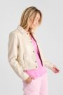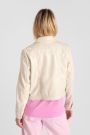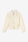 Beige vinyl jacket with perfecto collar, long sleeves and tone-on-tone monogram inlay on back.