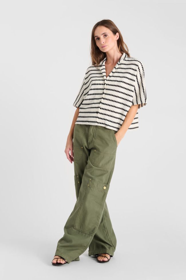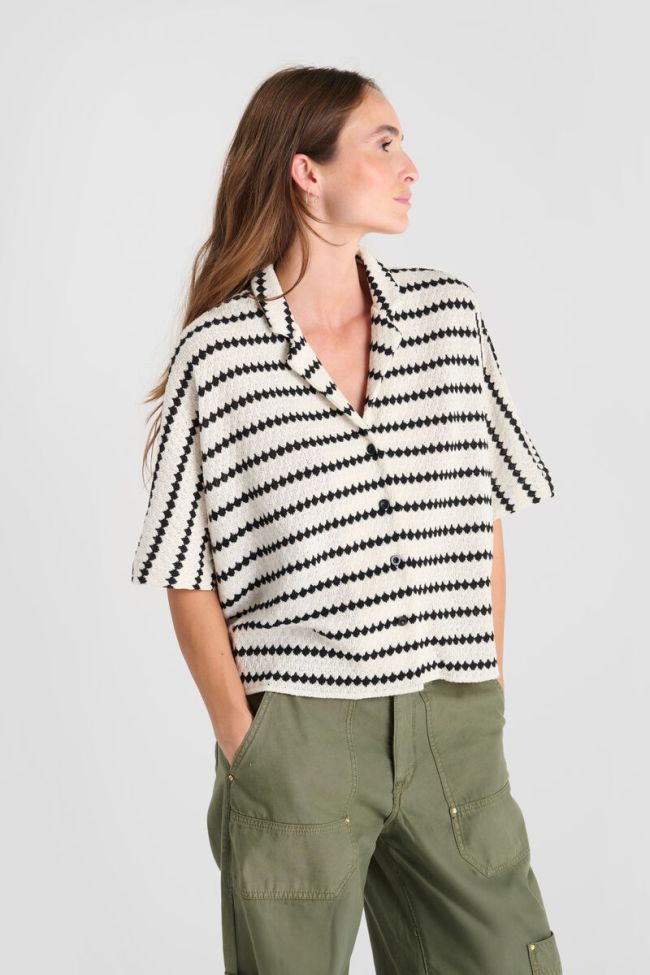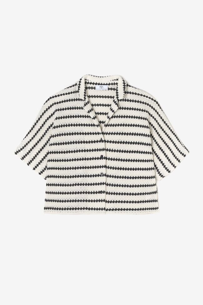 Striped crochet cotton shirt, loose fit.