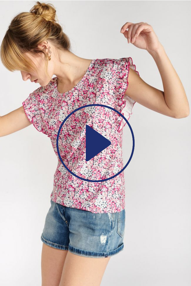 This Hutt top is very feminine with its pink floral pattern, its slightly pleated jersey fabric and its flounced shoulders.