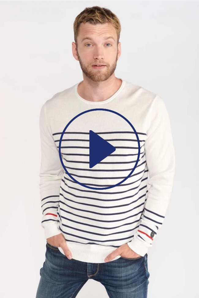 This Belur jumper is a must-have with its stripes and fancy details on the bottom of the sleeves. A custom “Le Temps des Cerises” patch covers the left wristband.