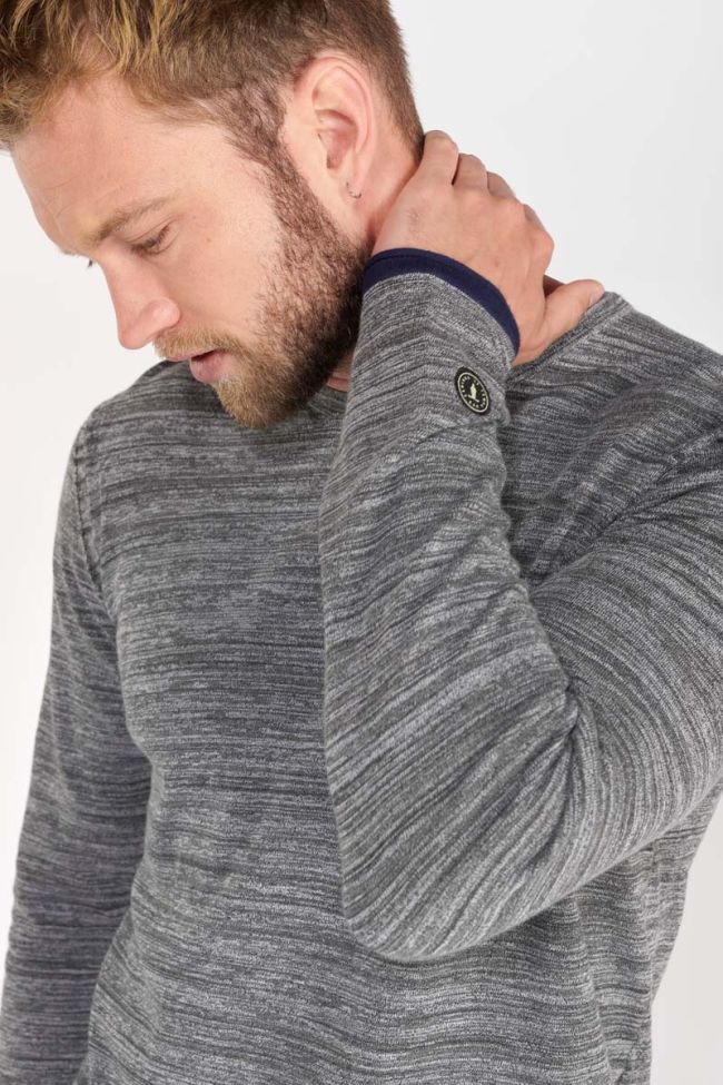 This Madel jumper is a timeless piece to have in your wardrobe with its marl grey fabric and navy trim at the cuffs and hem. To make it more stylish, the edges are rolled-up at the collar, cuffs and hem. And finally, a custom “Le Temps des Cerises” patch on the left wristband.