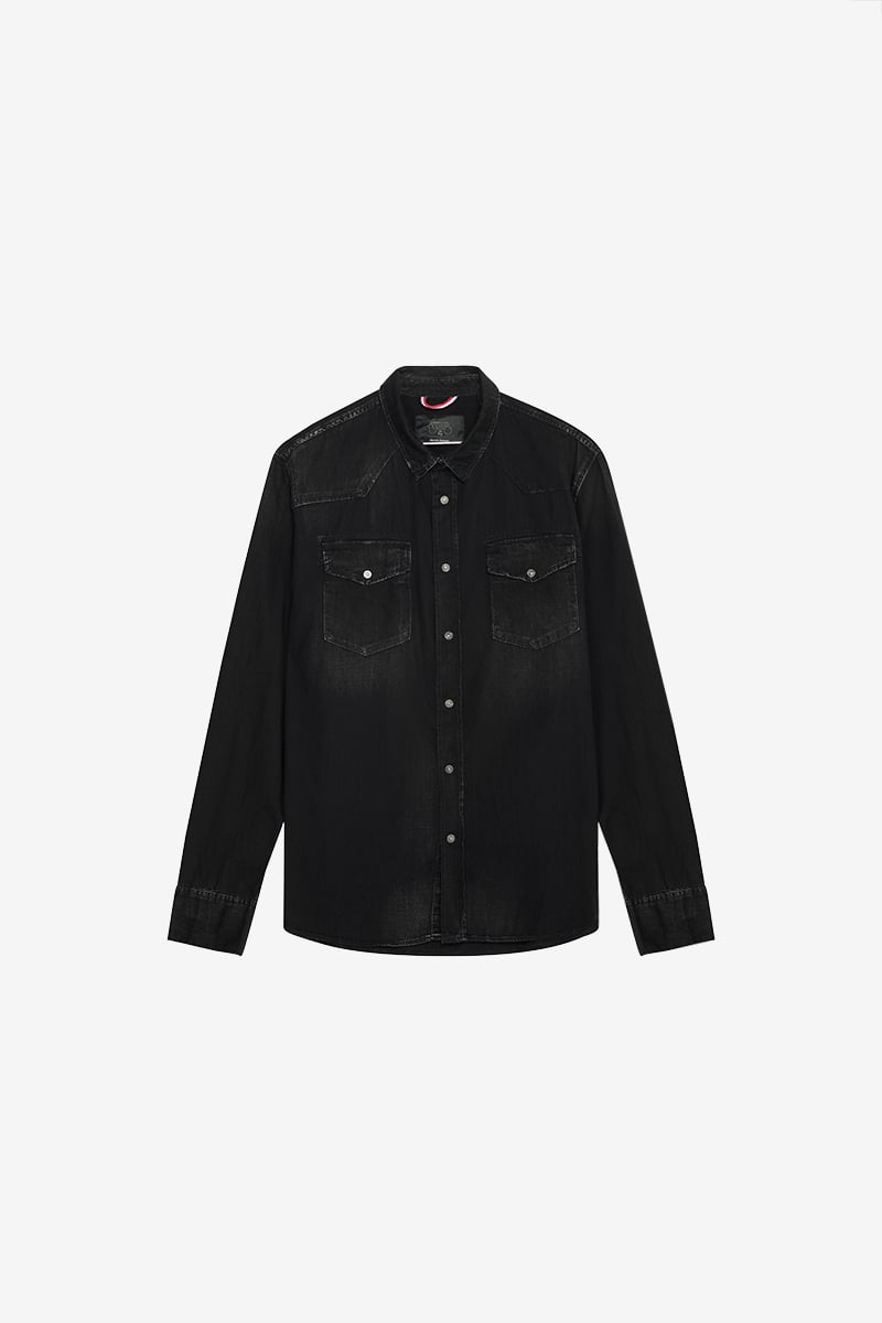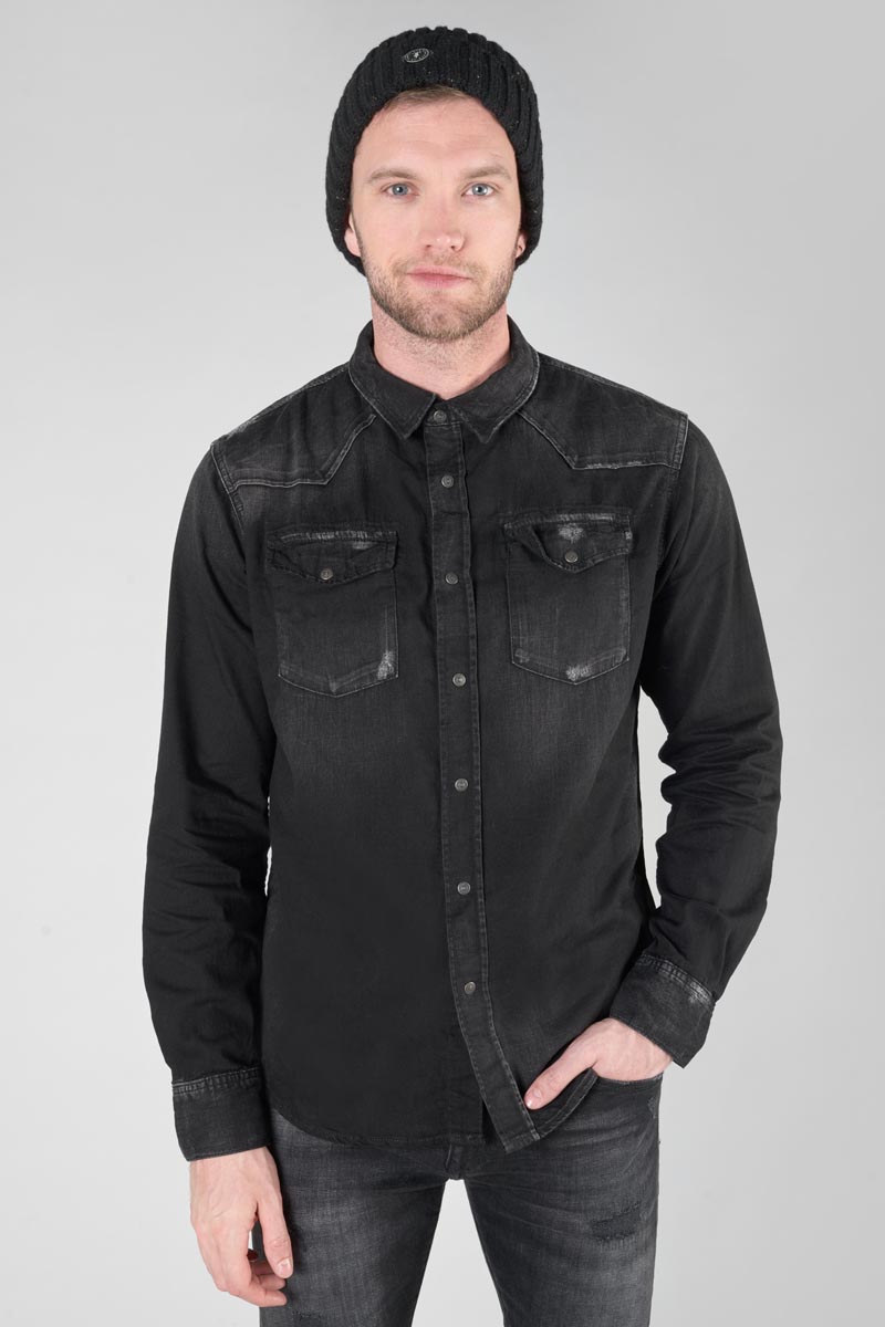 For a walk in the city, opt for a men's long-sleeved denim shirt! Pair it with black jeans and a pair of boots for a chic casual look.