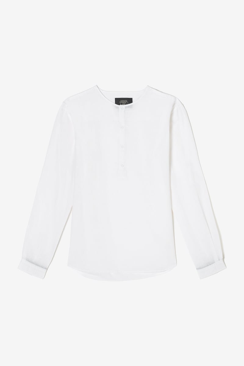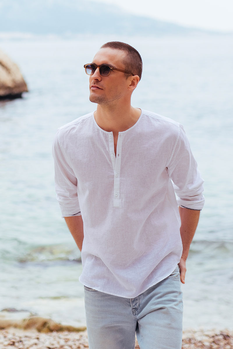 For the office, the white shirt is perfect with a blazer and a pair of leather sneakers.