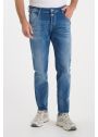 The tapered cut of these jeans is right on trend, thanks to the twisted seams, darts at the knees and front pockets. This cut combines style and comfort, thanks to the denim that moves with you and your body. The distressing, patched holes and fifth decorative pocket make them more stylish.